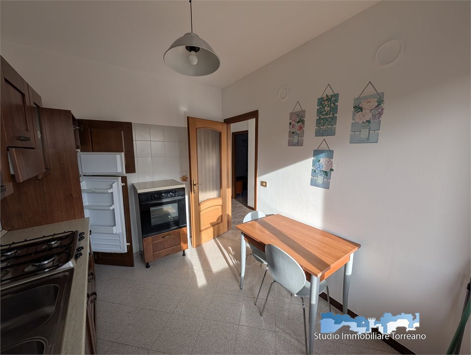 Composizione interna: Ingresso su disimpegno, soggiorno luminoso, cucina abitabile, due ampie camere da letto e bagno.